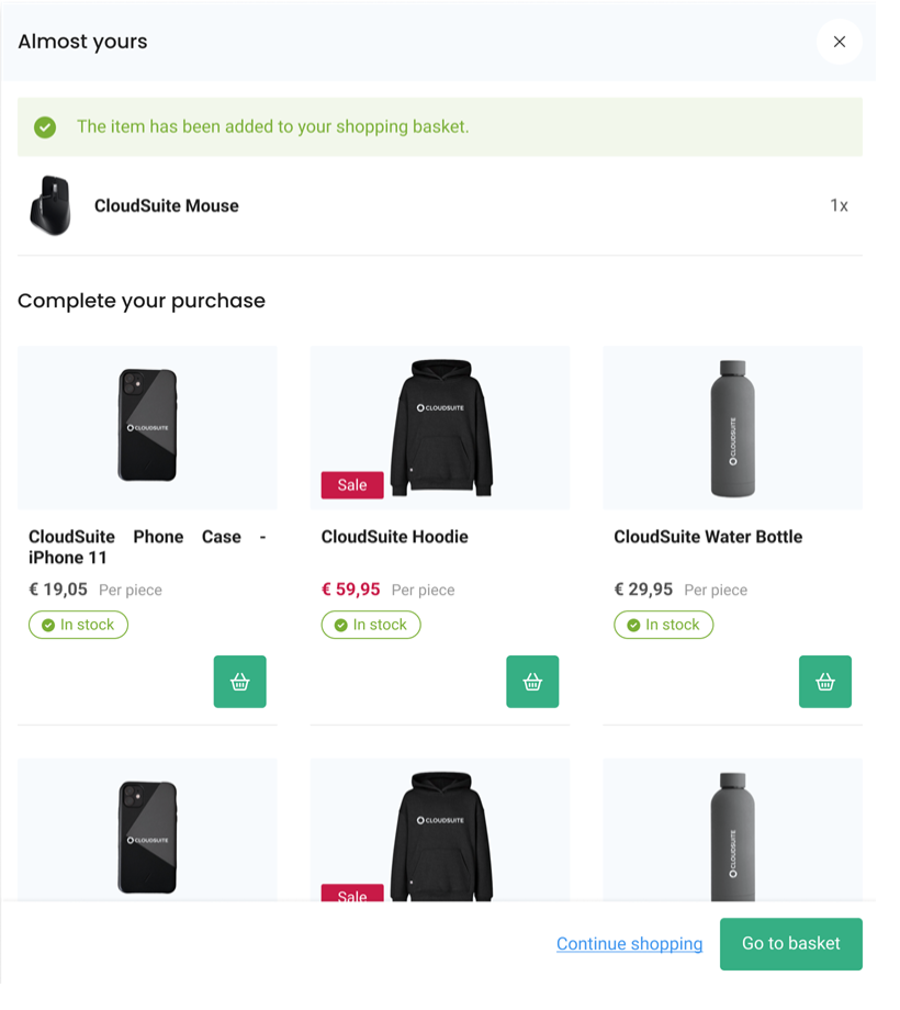 To trigger customers to add additional products to their basket, you can also show a pop-up with cross-sell options for the selected product.