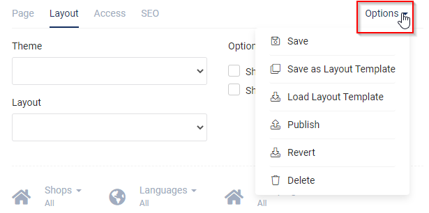 - Select the Layout for the page. The drop-down lets you choose from the following standard layouts: