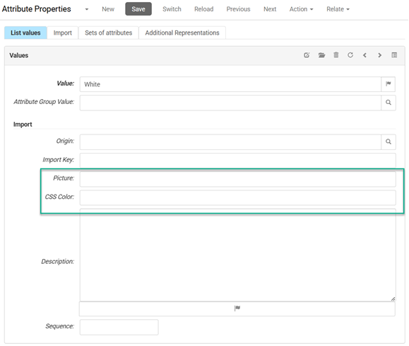 - find an image showing the color in the Digital Asset Manager in the CloudSuite Admin (upload one if necessary), then paste its URL in the Picture field, or