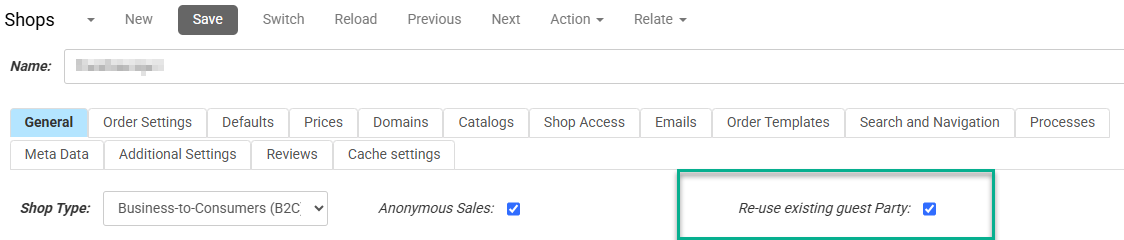 - In the shop details, go to the General tab and check Re-use existing guest Party.