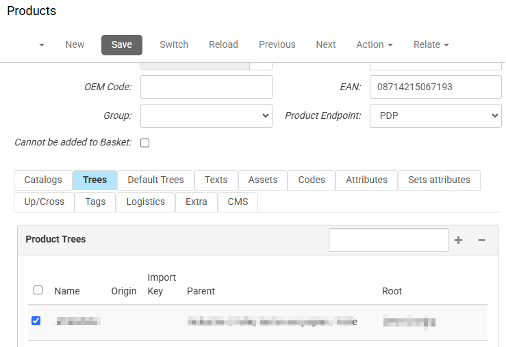 - In the product details, go to the eCommerce tab and make sure that a tree is linked in the subtab Trees.