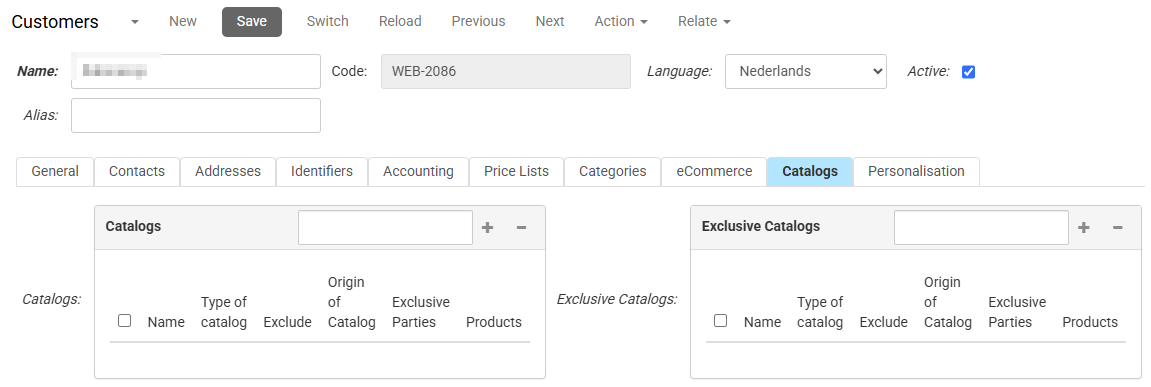 - The list Catalogs overrules the shop catalogs for the customer. Note that any catalog in this list can be marked in the in the catalog details as Exclude, meaning that the products in the catalog will not be shown to customers who are linked to it.