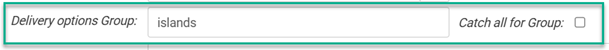 A Delivery options Group can be used to activate the configured delivery service for a group of locations. When a group has been specified, you can check Catch all for Group to set the delivery service line as the default one for the group: the one that is used when none of the other options in the delivery options group apply to the shipping address the customer provides during checkout.